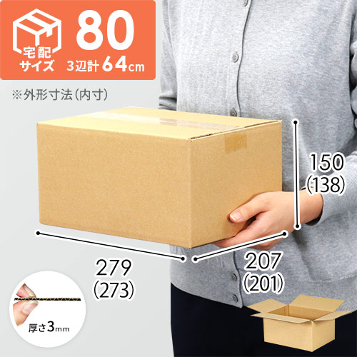 内寸273×201×138mmで、宅配80サイズ対応のダンボール箱。既存の「WBOX-02」が2箱入る大きさで、納品箱などに適しています。