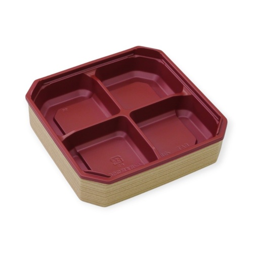 高級感漂うワン折重シリーズの本体。美しい杉赤色が料理を引き立て、特別なシーンを華やかに演出します。※蓋は別売です。