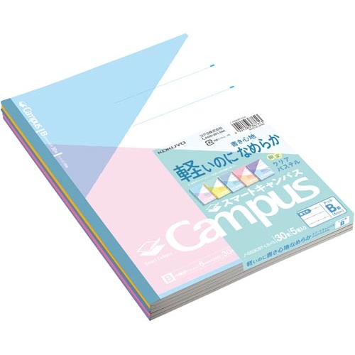 書き心地なめらかなスマートキャンパス限定パステルカラー5色セット。セミB5、B罫、30枚、20冊入。