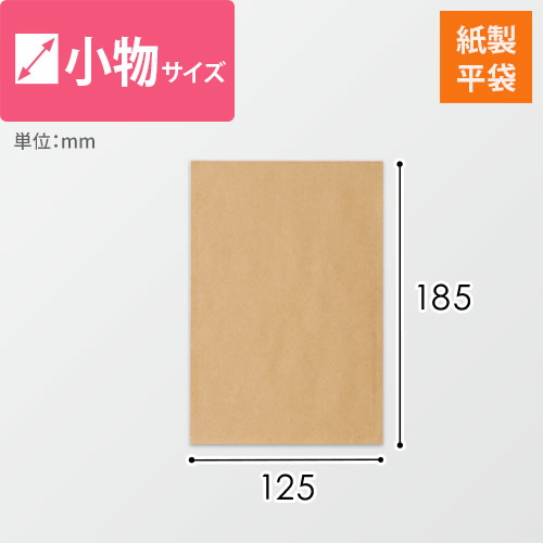 125×185mmの紙製でエコな平袋(茶)。小物や雑貨等のラッピングに適しています。