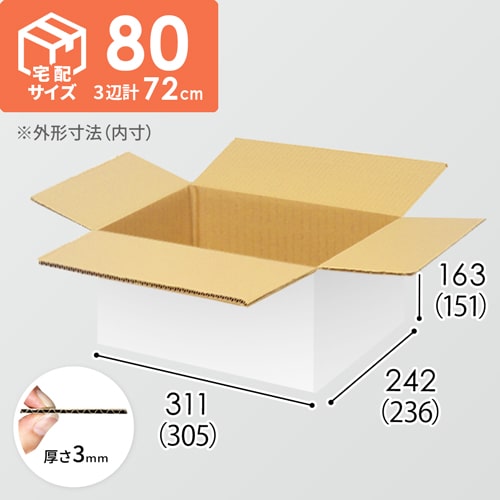 内寸305×236×151mmで、宅配80サイズに対応したダンボール箱。家電製品、AV機器、PC周辺機器を扱うお客様におすすめの仕様です!