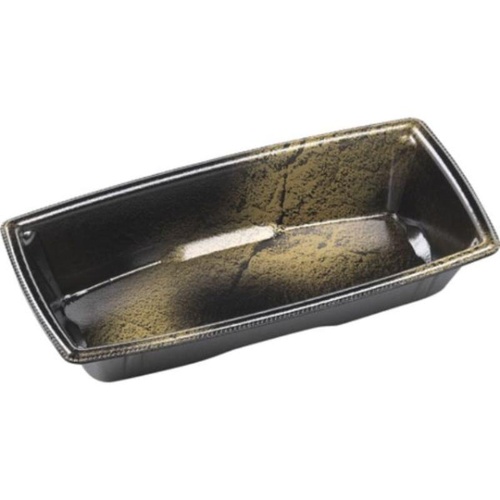 高級弁当の品格を高める黒の底材。プラスチック使用量を削減した環境対応型で、アクタ製縁・蓋と組み合わせて使用可能です。