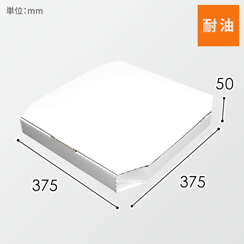 14インチ(約35cm)のピザが入る八角形のピザ用ボックス。サイズは375×375×50mmで、使いやすいシンプルな白無地タイプ。内側に耐油加工が施してあります。