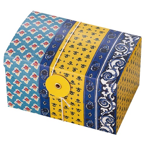 プロヴァンス風の華やかレトロなギフトボックス。玉紐付きで、マドレーヌやレモンケーキなど小さなお菓子を手軽におしゃれにラッピングできます。