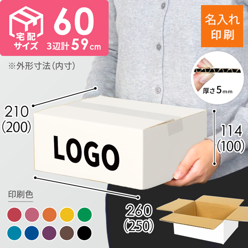 宅配60サイズの白色ダンボール箱に、お客様のロゴや社名などを名入れ印刷します(60Dと同サイズ)。