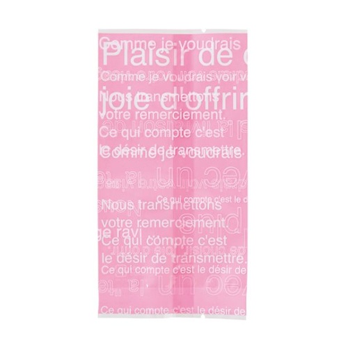 脱酸素剤・乾燥剤対応の食品用OPP袋。カフェオレモチーフのピンク色と両面異デザインで、洋菓子の個包装を華やかに彩ります。