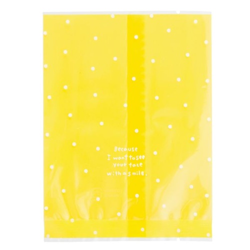 愛らしいイエロードット柄が特徴。食品対応で脱酸素剤・乾燥剤にも使える高機能OPP袋。スイーツに最適です。