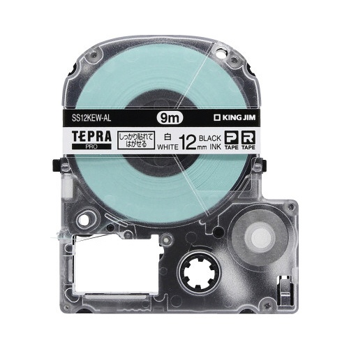 キングジム「テプラPRO」用ラベルテープ。白ラベル/黒文字 幅12mm×長さ9mの5個パック。
