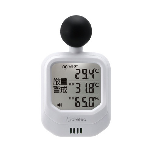 JIS B 7922適合。アラーム、WBGT/時計表示切替、屋外/屋内モード切替機能搭載。