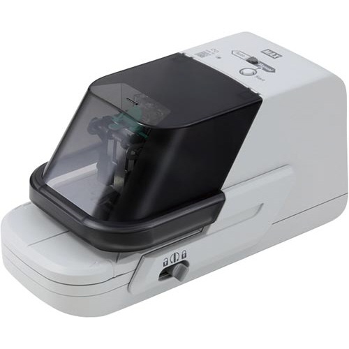 用紙を差し込むだけで最大40枚を自動で綴じる電動ホッチキス。ACアダプタ/電池駆動。