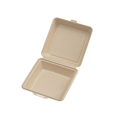 パルプモールド製の一体折容器。耐油・防水・電子レンジ対応で、幅広いメニューに活躍します。