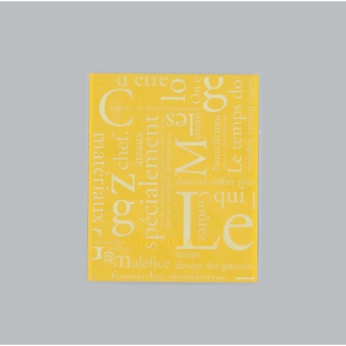 和洋菓子に最適な日本製カマス袋。ガスバリア性と防湿性に優れ、脱酸素剤に対応。洋柄イエローのデザインとノッチ加工で商品価値を高めます。