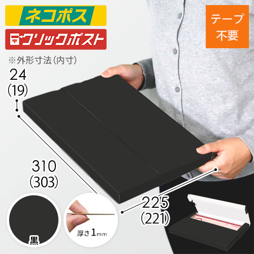 表面に黒色のカラーライナーを使用したメール便ケース。高級感ある見た目に仕上がるため、通販商品の発送やパッケージなどにおすすめです。