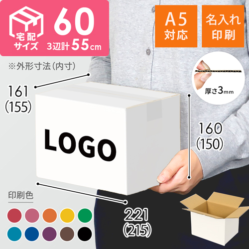 宅配60サイズの白色ダンボール箱に、お客様のロゴや社名などを名入れ印刷します(60Aと同サイズ)。