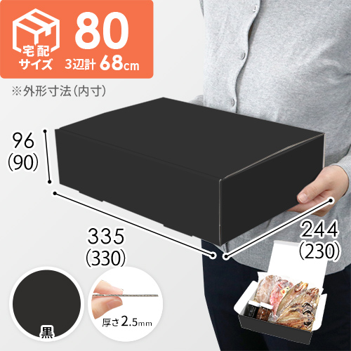 表面に黒色のカラーライナーを使用した宅配80サイズ対応ダンボール箱。高級感ある見た目に仕上がるため、通販商品の発送やパッケージなどにおすすめです。