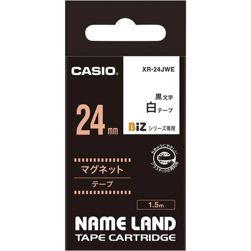 ホワイトボード用のネームプレート作成に!テープ長1.5m、幅24mm。白ラベルに黒文字。