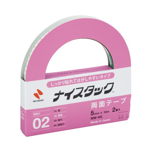 ニチバン ナイスタック しっかり貼れてはがしやすいタイプ。幅5mm×18m。2巻入。掲示物や小物に最適!分別廃棄しやすいミシン目付き。
