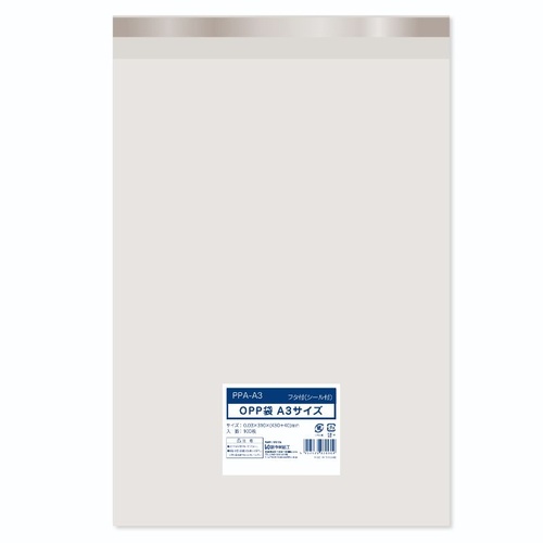 アルミ蒸着素材で静電気ゼロを実現。剥離テープが手に絡まず、作業効率と後片付けをスムーズにするA3サイズOPP袋です。