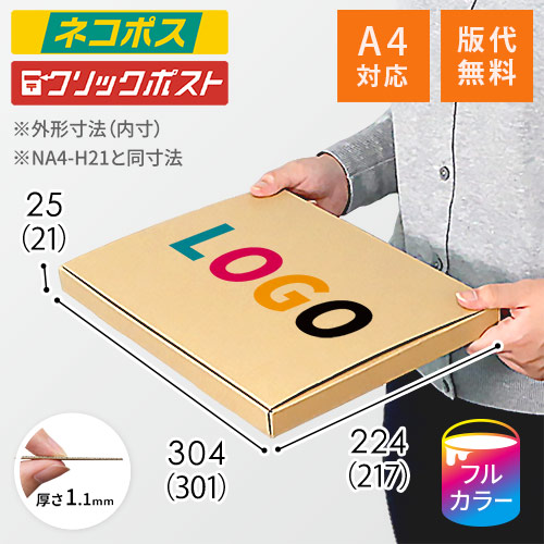 底面A4サイズの名入れ印刷メール便ケース(NA4-H21と同寸法)