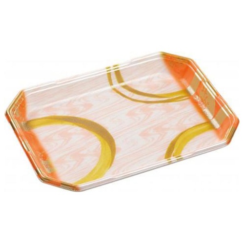 日本の食卓を彩る和柄「浮草」の深型惣菜トレー。軽量PSP素材で扱いやすく、スーパー・百貨店の陳列に貢献します。