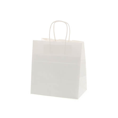 小型でマチ幅が広めの使いやすい手提げ紙袋。汎用性の高い白色無地で、ギフト用、ショップバッグなど、様々な用途にお使いいただけます。