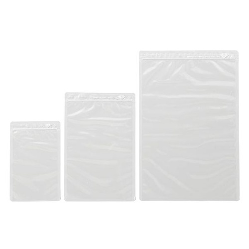 脱酸素剤・乾燥剤対応の透明蒸着PET製チャック袋。ガス遮断性・保香性で、食品の鮮度と品質を長期間維持します。