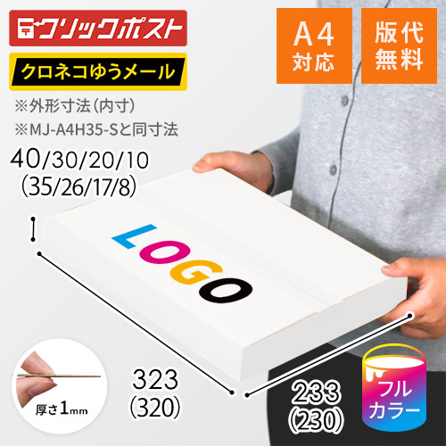 底面A4サイズの名入れ印刷メール便ケース(MJ-A4H35-Sと同寸法)