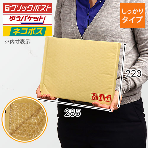 ネコポス最大サイズでB5が入る大きさのクッション封筒(しっかりタイプ)。ハリのある質感で 配送中の衝撃や摩耗に強く、配送後も形が崩れにくいのが特徴です。通販発送に最適です。