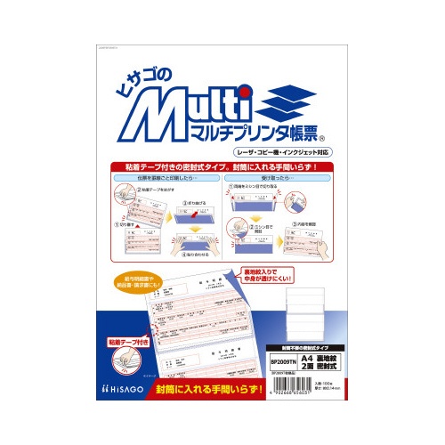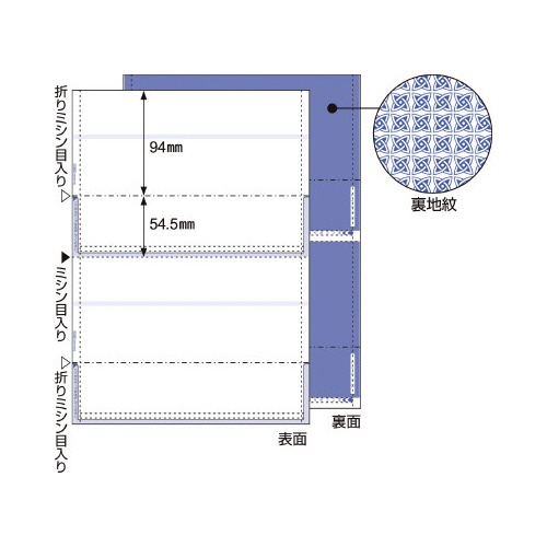 裏地紋入りで内容が透けにくいA4帳票。ミシン目入りで切り離し簡単、2面付けで効率的!