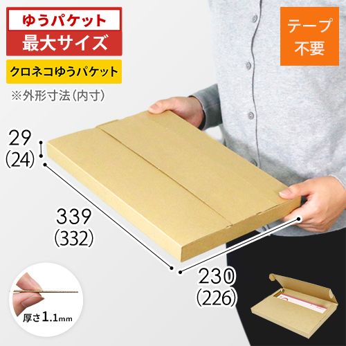 大幅なコストダウンによって業界最安級の価格を実現!厚さ2.5cm、底面A4サイズで通販発送に最適。ネコポスやクリックポストにも対応しています。