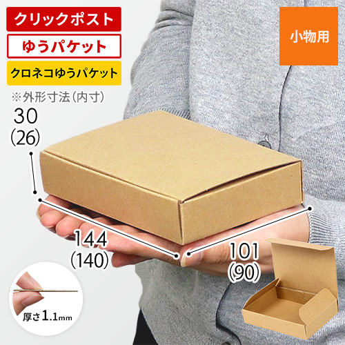 宅配80サイズで発送できる薄型のダンボール箱。サイズは長さ330×幅270×深さ60mmで、アパレル商品や写真立てといった厚みがあまりない雑貨の発送に便利です。