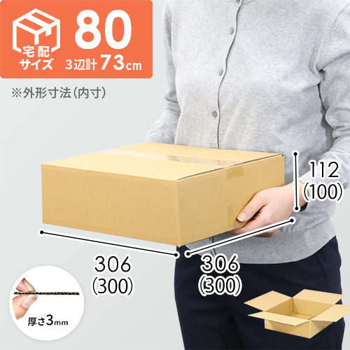 内寸300×300×100mmで、宅配80サイズに対応したダンボール箱。衣料品や服飾雑貨を扱うお客様におすすめの仕様です!