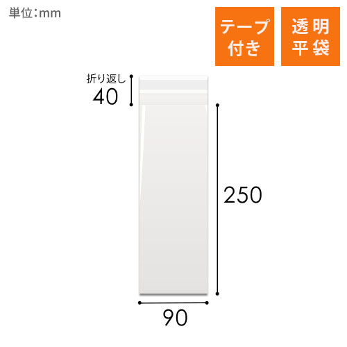 • OPP袋 90mm×250mm+40mmサイズ(テープ付き)