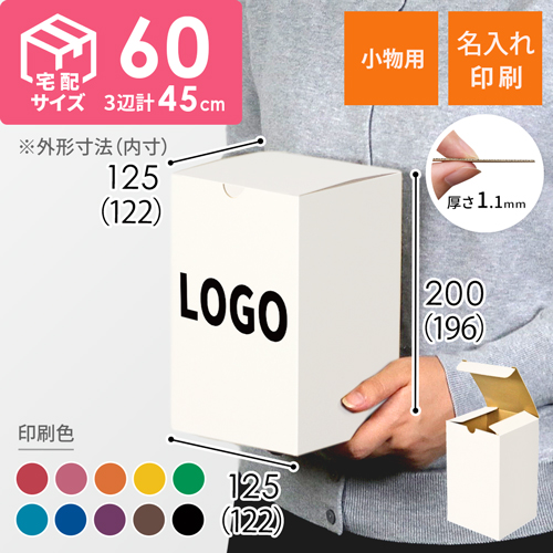 社名やロゴ等のお客様オリジナルデザインを印刷した、小物の梱包に最適な立方体のダンボール箱です。