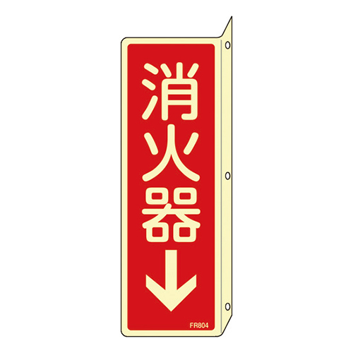 目に留まる場所に設置し、指示や注意喚起を行う安全用品。消火器の位置や避難する方向などを伝える標識です。