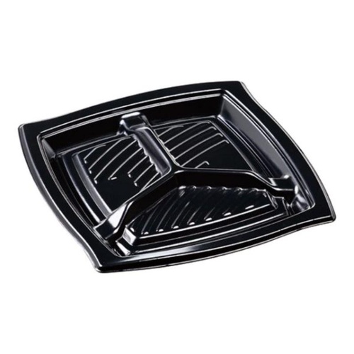 エフピコの仕切り付き冷惣菜容器。美しい黒で料理が引き立ち、作業効率も向上!エコなPSP製です。