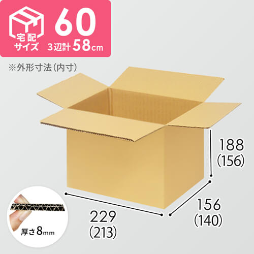 宅配80サイズ対応のダンボール(三辺合計61cm)。オーダーメイドで人気のサイズを商品化しました。食品や雑貨などの商品発送におすすめです。