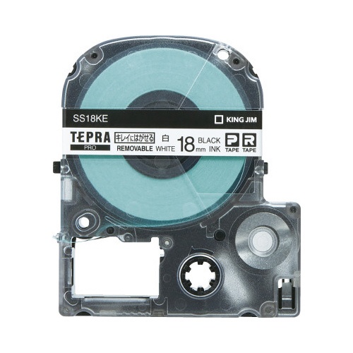 ファイルの再利用に最適な、はがせる白ラベル黒字18mm幅。テープ長8m。