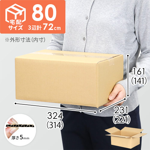 内寸314×221×141mmで、宅配80サイズに対応したダンボール箱。衣料品や服飾雑貨を扱うお客様におすすめの仕様です!
