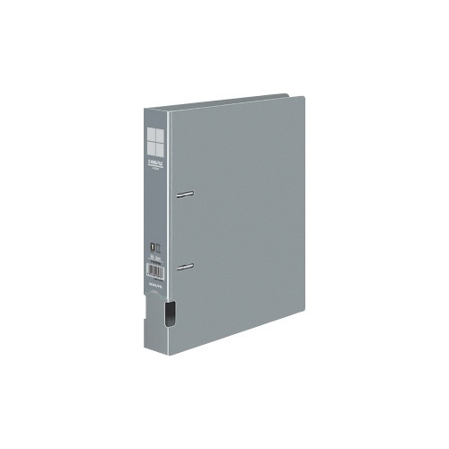 B5縦型、グレーのDリングファイル。書類の抜き差しが簡単で、約300枚収容可能。