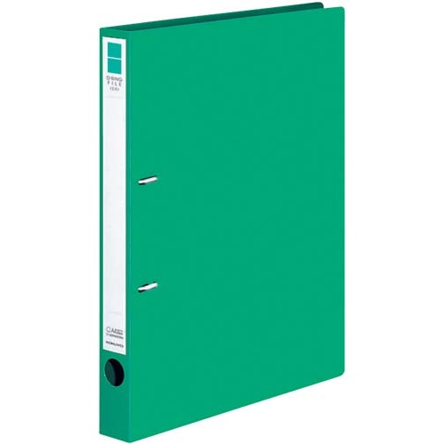 A4縦型、緑、背幅34mm。書類が約200枚収容可能。ユニバーサルデザイン採用。