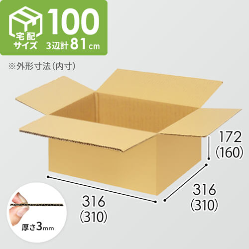 大手通販会社と同じ寸法で使いやすいダンボール箱。宅配140サイズに対応しています。材質は「5mm A/F(K5×160g×K5)」と丈夫です。