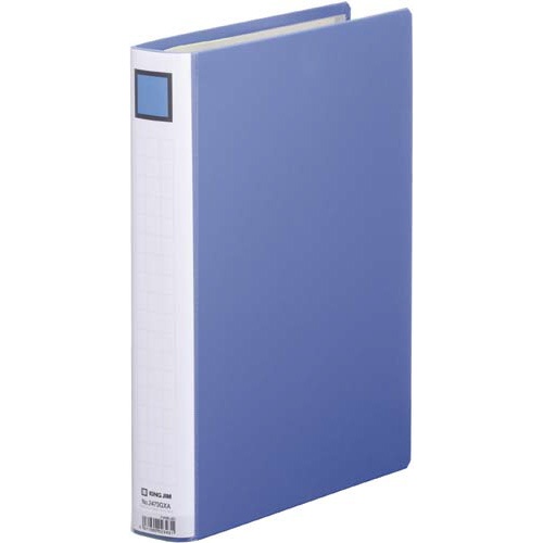 B4横型、青色のキングファイルSDDE。とじ具が簡単に取り外せて分別廃棄もスムーズ!収容枚数約400枚、背幅56mm。