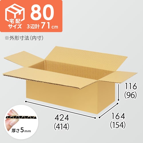 内寸414×154×96mmで、宅配80サイズに対応したダンボール箱。食品・飲料・お酒類を扱うお客様におすすめの仕様です!
