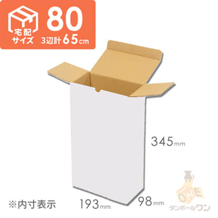 内寸348×231×103mmで、宅配80サイズに対応したダンボール箱。食品・飲料・お酒類を扱うお客様におすすめの仕様です!