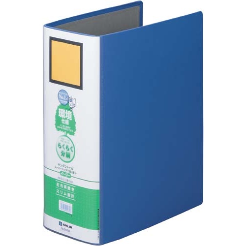B4横型、青色のキングファイルSDDE。とじ具の分別廃棄が可能で環境にも配慮!300枚収容、背幅46mm。