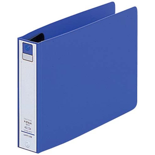 B6横型、青色のリングファイル。片方のリングをひねるだけで簡単に開閉でき、書類もフラットに。