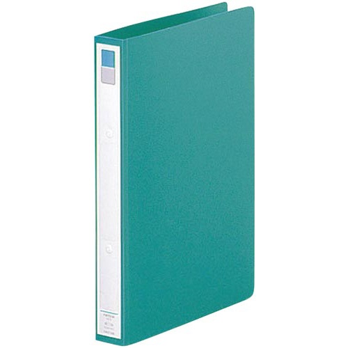 A4タテ型、緑、背幅27mm(とじ厚15mm)。書類がフラットになりやすいリングファイルです。