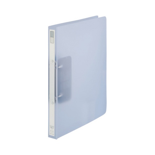 A4タテ型、乳白色のリングファイル10冊セット。書類がフラットになりやすい構造で、静かに開閉できます。