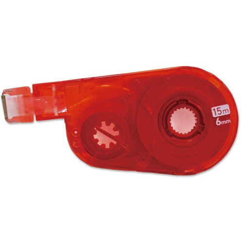 プラスの修正テープ、ホワイパースイッチ交換テープ。たっぷり15m巻で交換の手間を軽減!レッドカラーで、6mm幅。10個入り。